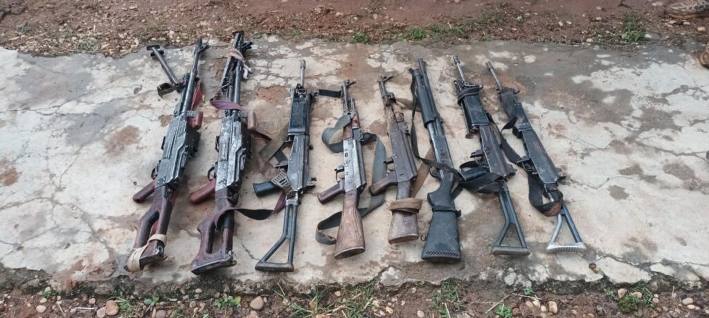 Lors des opérations de ratissage, un arsenal conséquent a été saisi, comprenant six (6) fusils d’assaut, cinq (5) mitrailleuses, un (1) lance-grenades, 5.000 cartouches de calibre 7,62 mm, 4.570 cartouches de calibre 5,56 mm, 58 grenades