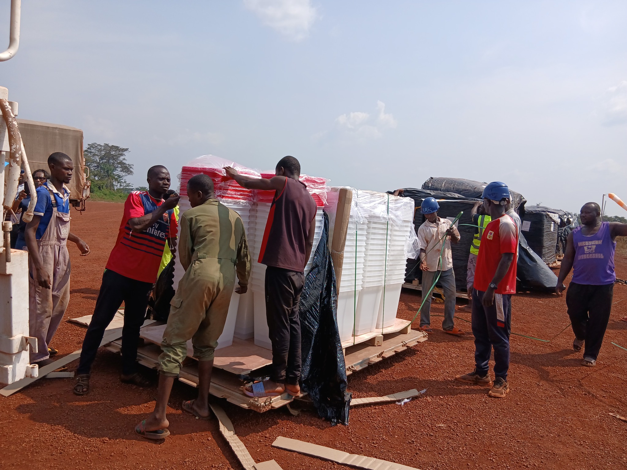 Comme l’a indiqué la MINUSCA dans sa déclaration, orale, le matériel électoral non sensible, comprenant des urnes, des isoloirs et divers kits pour les bureaux de vote, d’un poids total de 590 tonnes, a commencé à être acheminé vers les 19 préfectures du pays. L’opération a débuté le 2 décembre et se poursuivra jusqu’au 10 décembre. Le transport terrestre et aérien est utilisé, ce qui est particulièrement important pour les régions difficiles d’accès disposant d’une infrastructure peu développée.