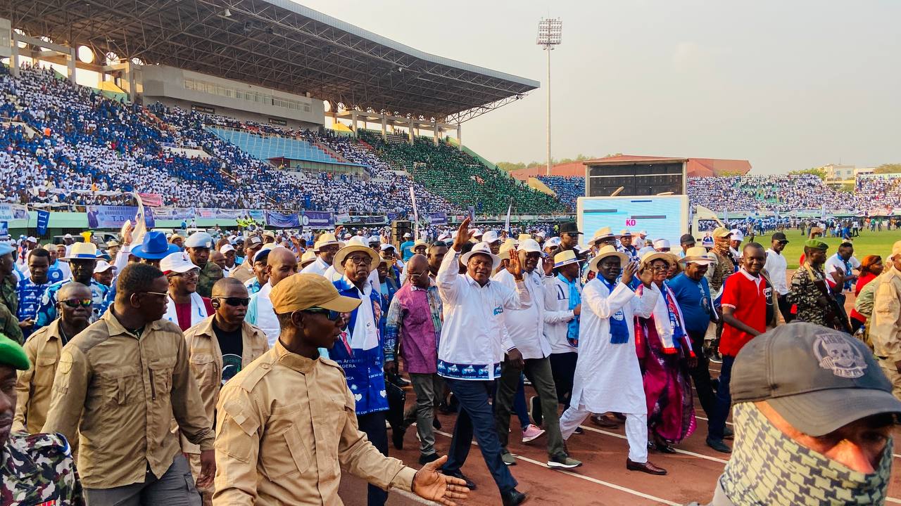 L’événement, organisé par le parti au pouvoir « Mouvement Cœurs Unis » (MCU) et de nombreuses associations de soutien, a rassemblé plus de 15 000 personnes. Une atmosphère festive a été créée par des prestations de groupes musicaux nationaux, de troupes de danse folklorique, d’un orchestre d’harmonie et de majorettes, transformant le rassemblement politique en une véritable fête populaire.