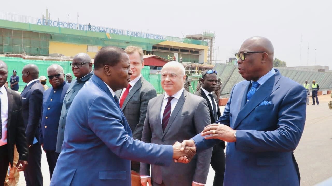 Le départ du Président Touadéra pour la Russie dans la journée de dimanche 1er mars, a été marqué par les traditionnels honneurs militaires et protocolaires à l’aéroport International Bangui-M’Poko, où plusieurs hautes personnalités étaient présentes, notamment le Premier Ministre Félix Moloua, plusieurs Membres du Gouvernement et du Cabinet présidentiel, le Chef d’État-Major de l’Armée ainsi que les Directeurs Généraux de la Gendarmerie et de la Police nationale.