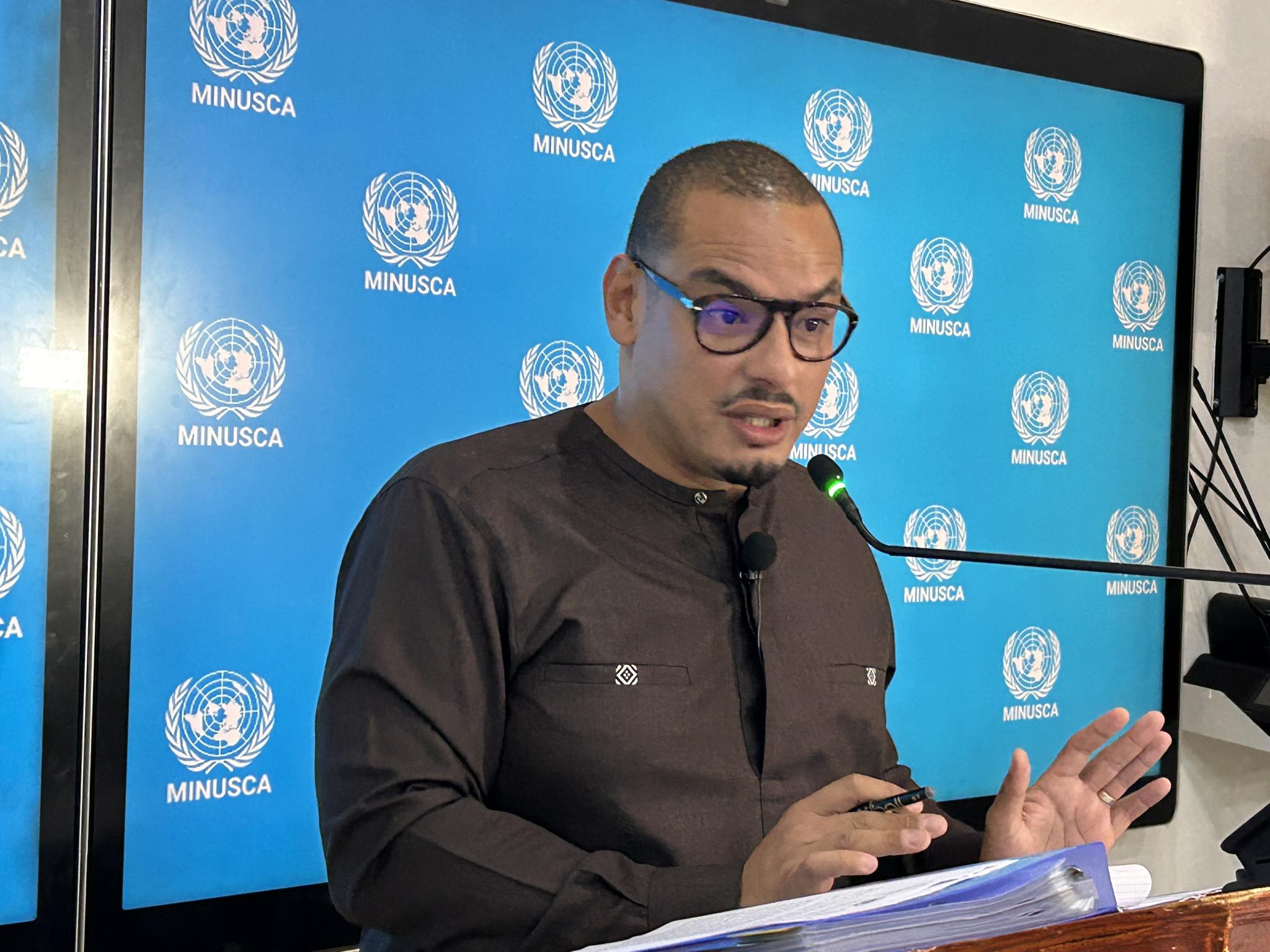 Lors de sa traditionnelle conférence hebdomadaire, le mercredi 16 avril 2026, le Porte-parole par intérim de la MINUSCA, Joël Ndoli Pierre, affirme que la Représentante Spéciale du Secrétaire Général des Nations Unies en Centrafrique, a salué les efforts du gouvernement dans la réussite des élections groupées du 28 décembre. «La Représentante spéciale du Secrétaire Général des Nations-Unies, a rencontré le Premier Ministre, Chef du gouvernement, afin de faire le point sur l’organisation des élections groupées du 28 décembre 2025. A cette occasion, elle a salué les efforts déployés par le gouvernement, pour relever ces défis majeurs, en rappelant que les scrutins, présidentielle, législative, régionale et municipales, n’ayant pas eu lieu depuis 38 ans, se sont tenues sur l’ensemble des 20 préfectures du pays. 6679 bureaux de vote sur près de 6700, ont été ouverts et opérationnels y compris, dans des localités où les élections n’avaient jamais été organisées auparavant», a salué le Porte-parole par intérim de la MINUSCA.